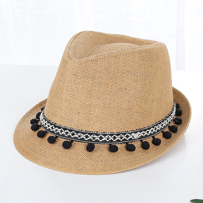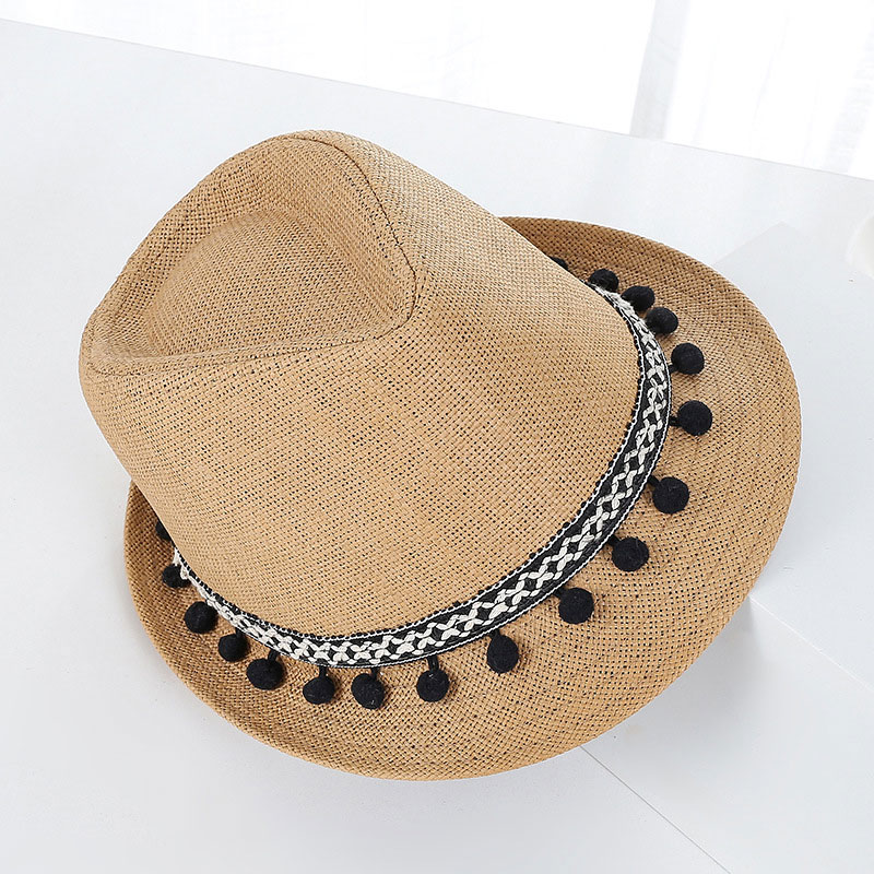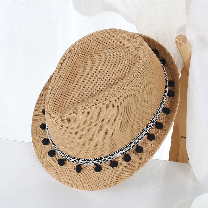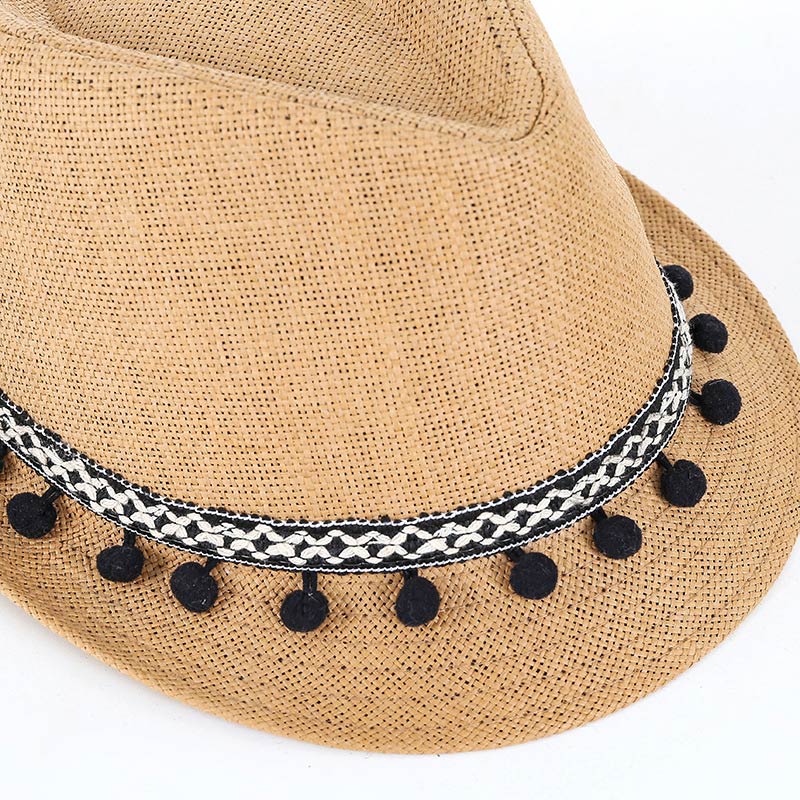 Søt Pom Pom Trim Trilby stråhatt for menn |